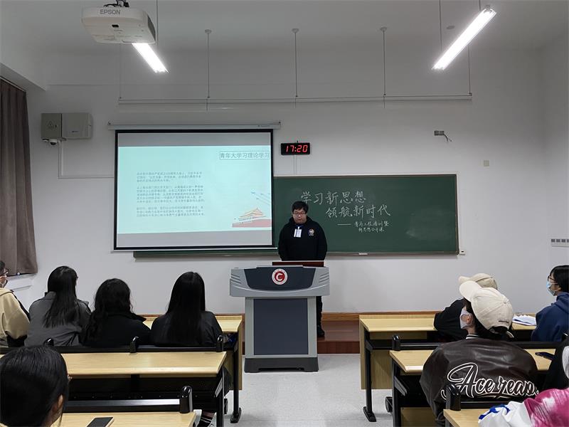 本次公开课的学习主题是“学习新思想,领航新时代”,公开课分三个流程进行:第一,观看《学习新思想》短片,短片围绕抗疫来展开新冠肺炎疫情期间乡村模范官在疫情防控中发挥的模范作用,让同学们理解了以人民为中心的深刻内涵。第二,进行主题学习,章康玮向大家介绍了学习新思想对于当代青年的重要作用,具体讲述了八个明确和十四个坚持的内容。第三,开展主题知识问答小游戏,大家观看“学习新思想,争做新青年”青年大学习视频,通过三个知识问答成功为本次公开课收尾。