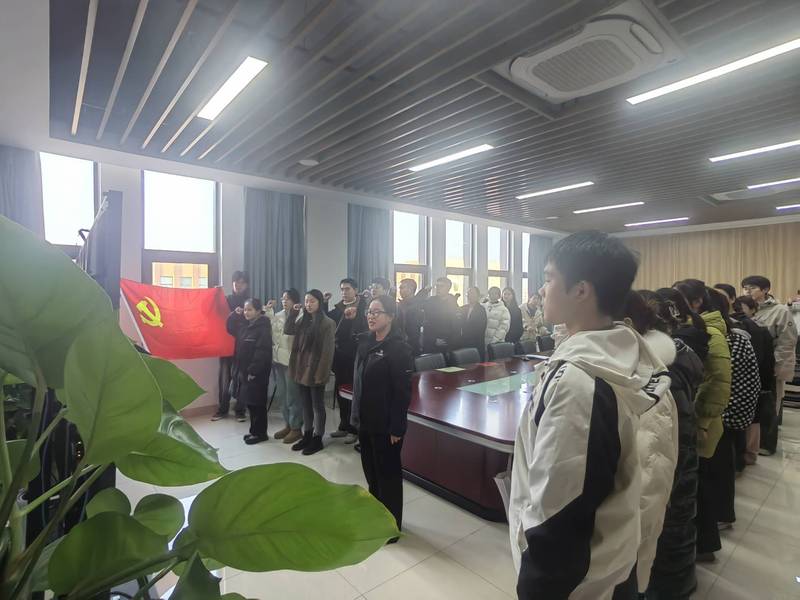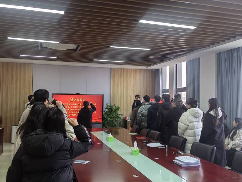 第三项议程为入党宣誓。由党支部副书记唐书婷带领新一批发展的预备党员和转正党员进行了庄严地入党宣誓。