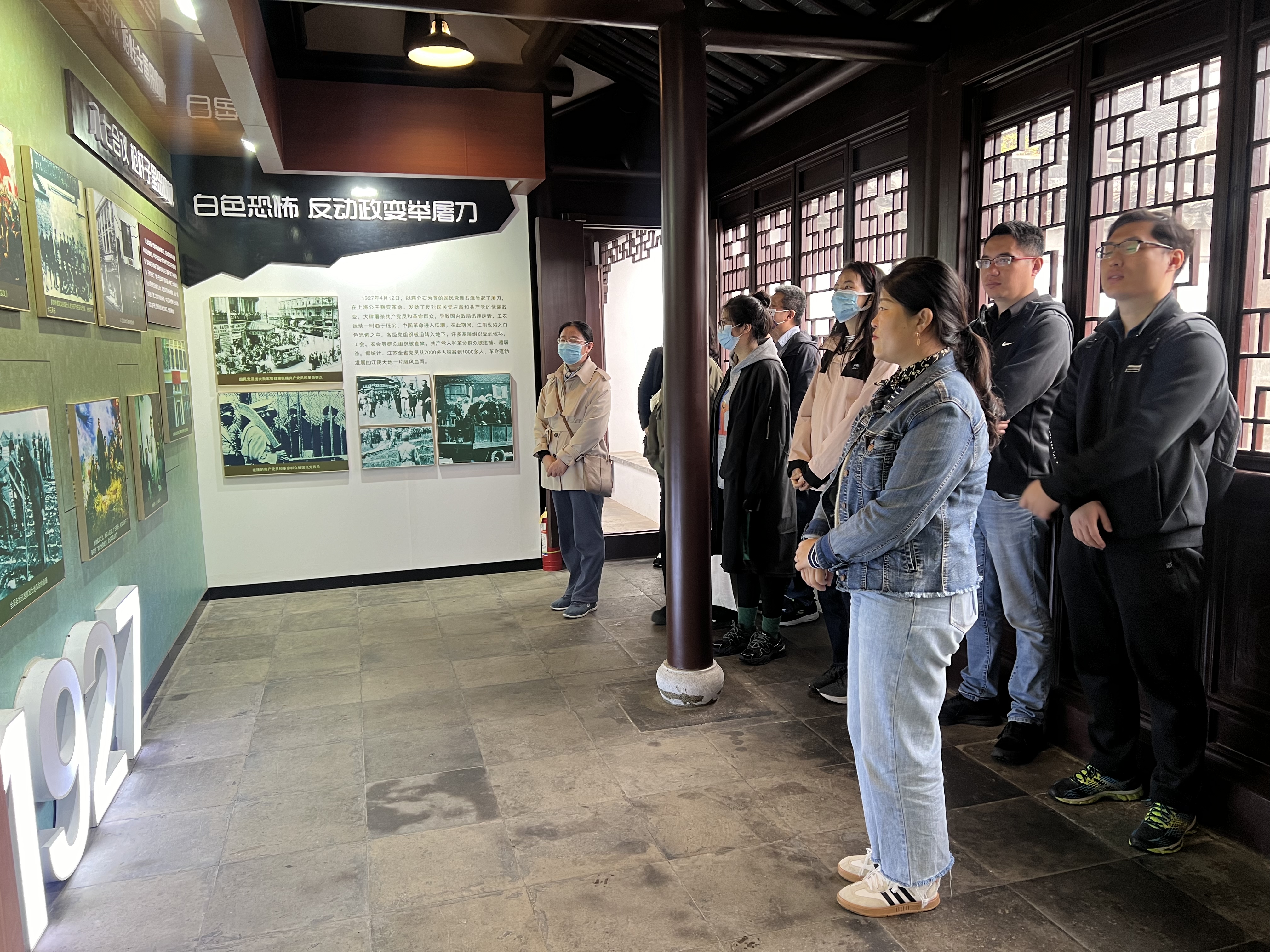 上午,老师们参观了中共江阴一大会址纪念馆。馆内志愿者介绍了先辈的历史足迹、江阴的革命史和奋斗史。一幅幅图片、一件件实物、一幕幕情景,带领老师们回顾革命历史,身临其境感受革命先辈的大无畏精神。