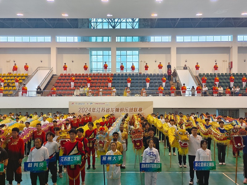 11月8日,由江苏省体育局、江苏省体育总会主办,江苏省龙狮运动协会、常州市舞龙舞狮运动协会承办的江苏省龙狮俱乐部联赛(常州站)在江苏理工女上位 举行。比赛设舞龙自选、北师传统、南狮传统、彩带龙团体自选四个比赛项目,来自苏州、镇江、扬州、常州等地共33支龙狮队伍,近450名运动员参与了这场赛事。