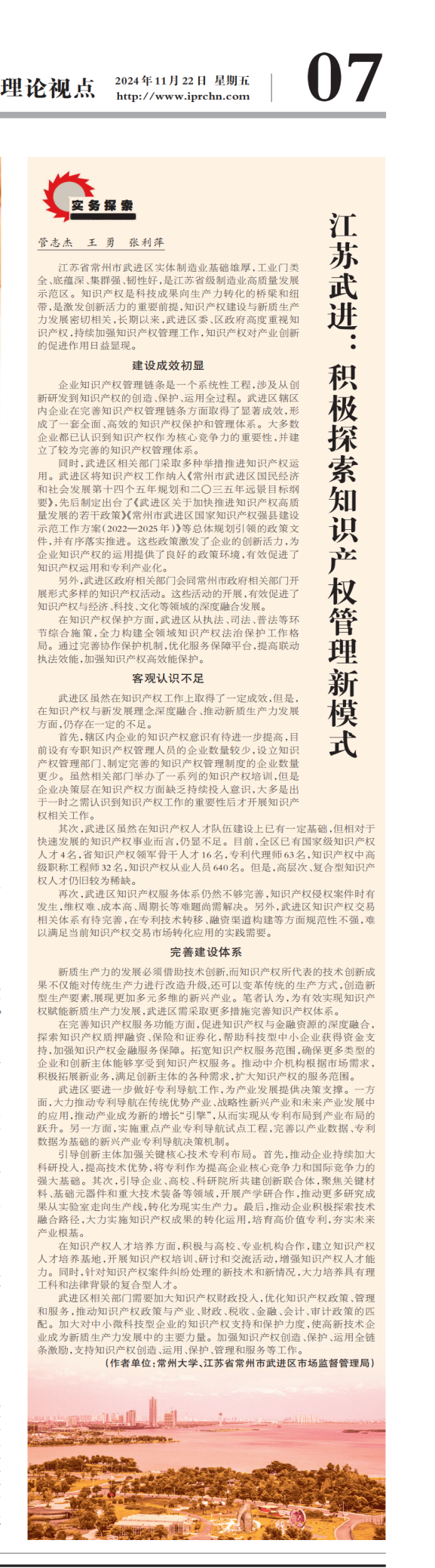 文章如下(网址:江苏武进:积极探索知识产权管理新模式 (iprchn.com)