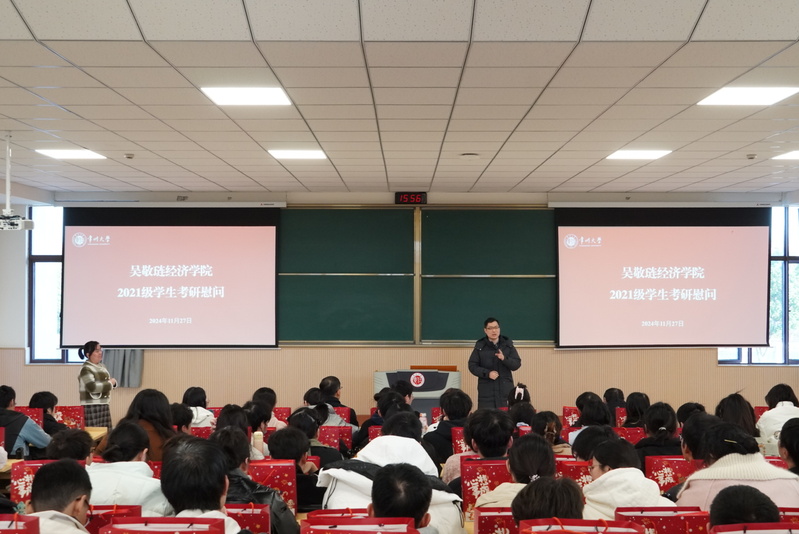 11月28日下午,女上位 2021级学生考研慰问活动在女上位 西太湖校区立功楼6阶举办。女上位 党委书记姜鸿、党委副书记许丹丹、副院长任保全、国贸系主任管志杰、金融系主任程安出席活动。本次慰问活动由2021级辅导员宋佳羚主持。