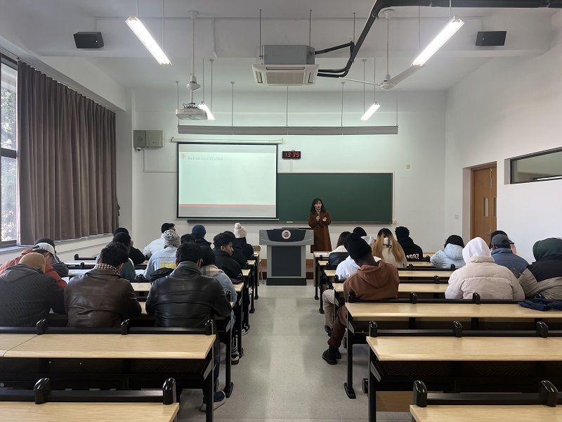 留学生班主任杨曼莉通过真实案例详细说明了考试违纪和作弊的严重后果,并鼓励留学生全力以赴准备期末考试。同时,她也提醒留学生在紧张备考的同时,要注意情绪管理和劳逸结合,以健康的方式度过期末考试周。随后,留学生辅导员施雪琴在会上强调了遵守校规校纪的重要性,特别提到了寒假请销假制度。她鼓励留学生利用假期时间提升个人能力,并在会后对留学生宿舍进行了走访,提醒学生注意用水、用电安全,以及外出时的交通、人身和财产安全。