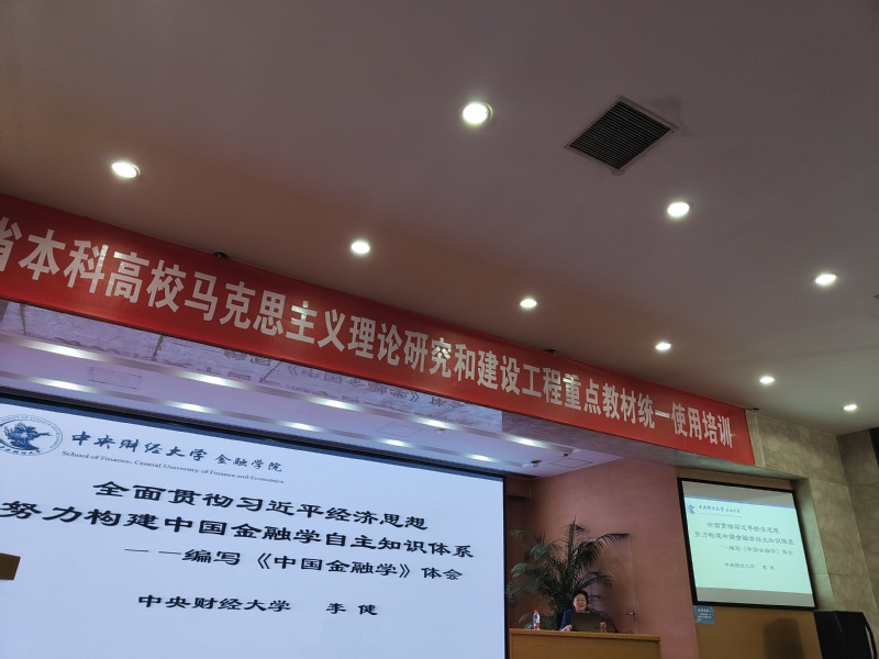 本次培训聚焦于近两年新出版或新修订的《中国金融学》等10种教材。其中,针对《中国金融学(首版)》教材,特别邀请了中央财经大学的李健教授进行讲解。李教授从当前中国金融教育教学改革的新任务出发,深入阐释了学科建设的新赛道。他结合落实国家事权、建设金融强国以及培养国家急需的高素质专业化金融人才的需求,明确了政治站位和原创性教材编写的重要意义。围绕本科《国标》中的金融本科专业核心课程群,李健教授确定了教学定位与原创性教材的编写思路,并立足中国金融学自主知识体系的 “四梁八柱”,重点解析了自主知识体系的构建以及原创性教材的框架结构。此外,他还依托教学资源数据库及信息沟通与反馈渠道,展示了原创性教材推广与配套教学资源的建设成果。