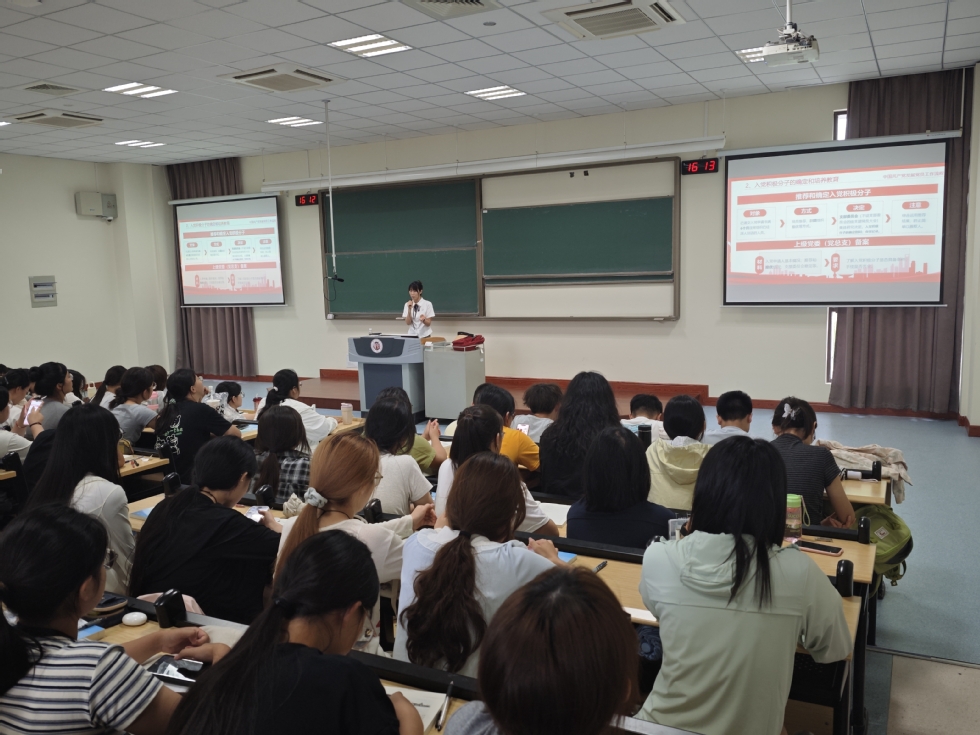启梦·发展型教育擘画成长蓝图。聚效“生涯规划”,以前瞻性、多元性思维助推学生长远发展、助力学生行稳致远。广西壮族自治区教育厅教研院主任科员陈一鑫从“大学课余时间该如何度过”为主题切入,以“亲身经历+实用指南”的形式生动阐述了社会服务的价值,激励同学们以实干践行青春担当,书写服务社会的生动篇章。国联民生证券常州分公司武宜中路营业部总经理刘金斌从行业现状、行业变化、职业定位和大学规划等四个方面进行阐述,引导同学们精准定位、提早谋划,把自己塑造成为职场需要的“多边形战士”。中信证券常州分公司内训师、首席客户经理吴清迪以《大一新生必备财富思维》为题,揭示了财富积累和增值背后的深层逻辑,增进了学生对证券行业的了解。院25届毕业生、浙江大学硕士女上位 汪鑫同学结合自身经历强调了学业规划的重要性,鼓励大家勇于尝试、力争上游,不断突破自身极限。院学生党支部副书记倪昊君、院团委副书记伏佳惠分别开展党团教育,理清了党员和团员的权利义务,勉励同学们更加严格要求自身。