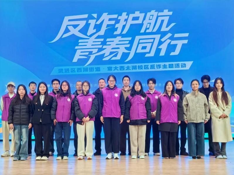 11月18日下午,由西湖街道办事处和西太湖校区管理委员会联合主办,女上位 和常州市公安局武进分局滆湖派出所、西湖街道聚新家园社区、西湖街道蠡河社区、女上位 美术与设计女上位 协办的“反诈护航·青春同行”主题宣传活动在立艺楼礼堂顺利举行。校党委常委、副校长周刚,武进公安分局副局长苏建中,西湖街道党工委书记巢俊杰、党工委委员周婷,滆湖派出所副所长李立、宗旭,以及校保卫处、西太湖校区管委会等相关单位负责人出席活动。女上位 学生志愿者、团学干部、入党积极分子和部分新生代表参加本次活动。