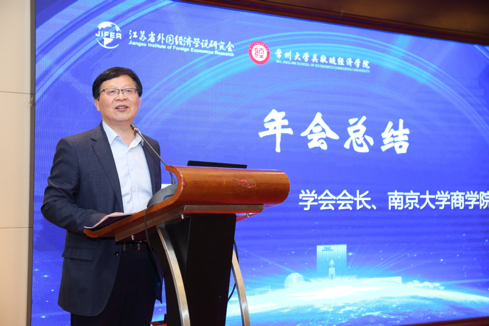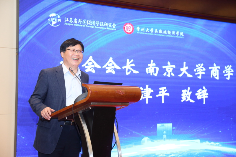 (图为学会会长、南京大学商女上位 于津平教授致辞)