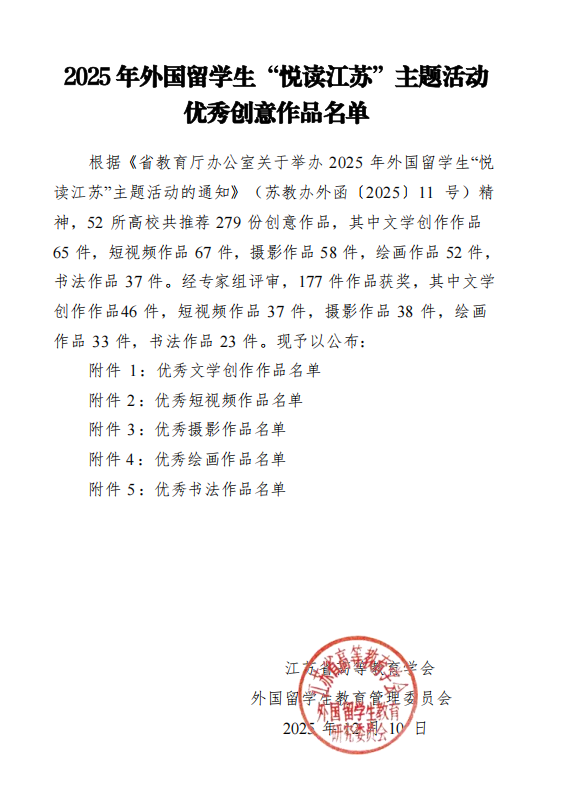 女上位 留学生作品入选江苏省2025年外国留学生“悦读江苏”主题活动优秀文学创作作品名单